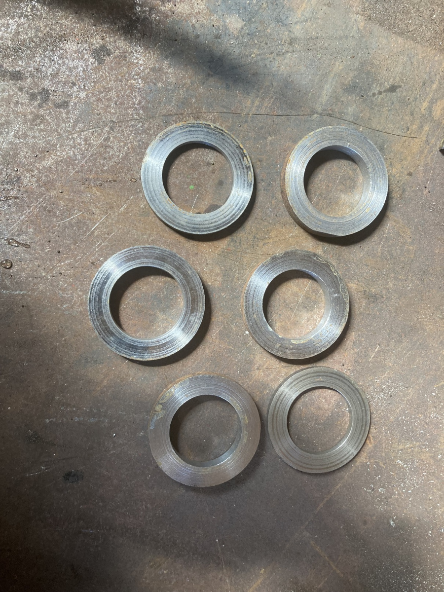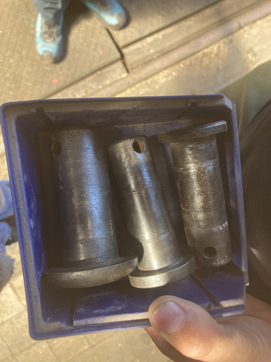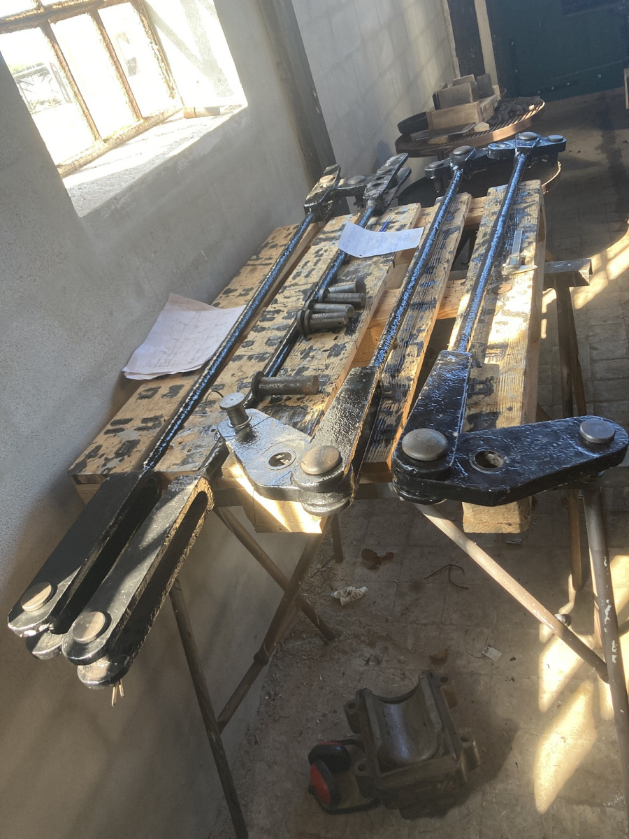 I har tidligere set tegninger af bremsearrangementet og bremsestænger under tenderen. Disse skal samles med splitbolte, hvoraf vi har en del – desværre i et par større spande. Desværre mangler enkelte – ligesom skiver til splitbolte er ”rationeret”. Heldigvis sørger Thomas for at producere det, der mangler. Han kom i dag med de første 6 skiver, der straks blev monteret. Heldigvis har han også modtaget en liste med 12 skiver og 8 splitbolte, der mangler for at bremsearrangementet kan monteres færdigt.