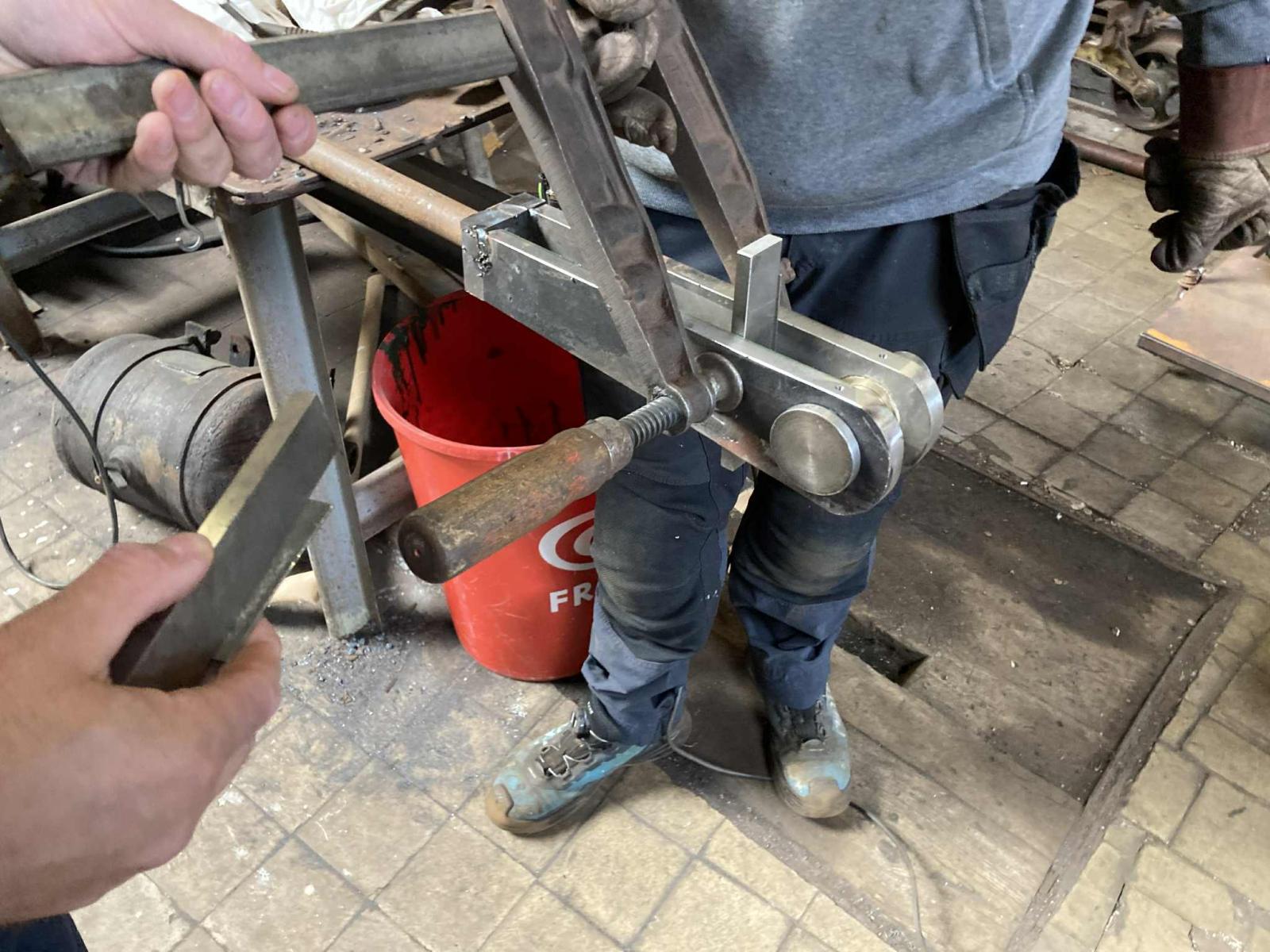 Som i husker, havde vi et hængeparti fra sidst: Gribelisten i højre side ville ikke rigtigt på plads. Det blev der rådet bod på i dag idet 3 møtrikker blev løsnet, listens 2 dele blev gjort rødglødende hvorefter delene med en tang og nogle hammerslag kunne genforenes og nu sidder på plads, hvor den hører hjemme.