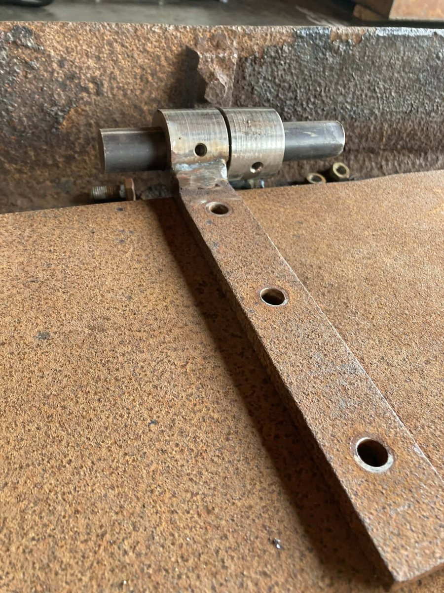 Venstre påfyldningsmekanisme var lidt mere vanskelig idet man i Roskilde-tiden havde skåret 3 stk hængsler over for at kunne demontere arrangementet. Vi havde tidligere – desværre uden held – efterlyst nye hængsler efter en her indsat tegning. Heldigvis har Thomas inden jul drejet de nødvendige ringe på sin drejebænk. Ergo blev dagen i dag brugt på at samle hele molevitten igen – inkl. de renoverede hænglser. Alting fungerer fint og lige så let som i modsatte side. Videoen leverer beviset.