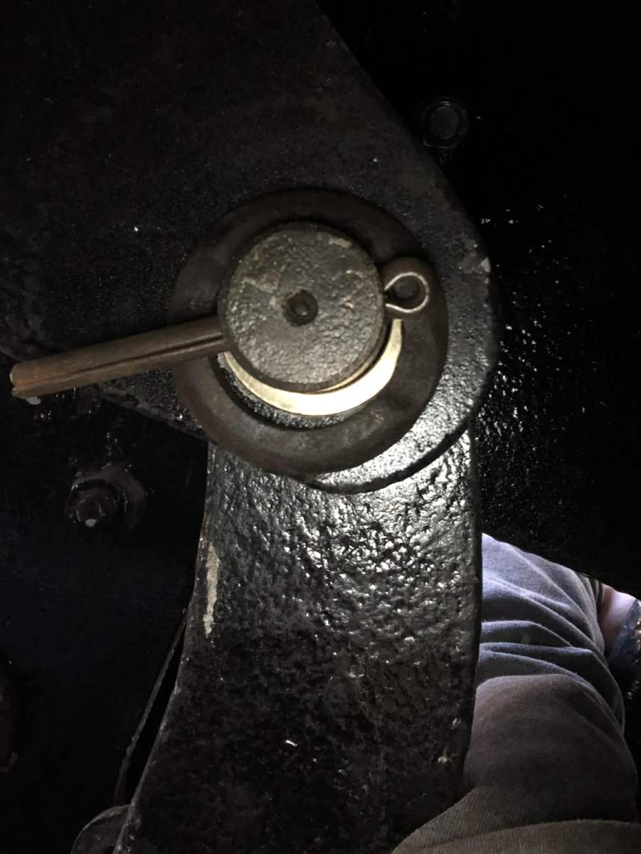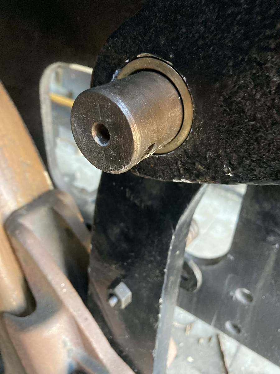 Og endelig havde vi stadig 2 broncebøsninger, som Thomas har drejet på arbejde. Disse bøsninger holder 2 lange splitbolte, der igen holder hver sin bremsehænger. Bøsningerne blev demonteret i Roskilde og er ikke siden dukket op. Men nu er de på plads.